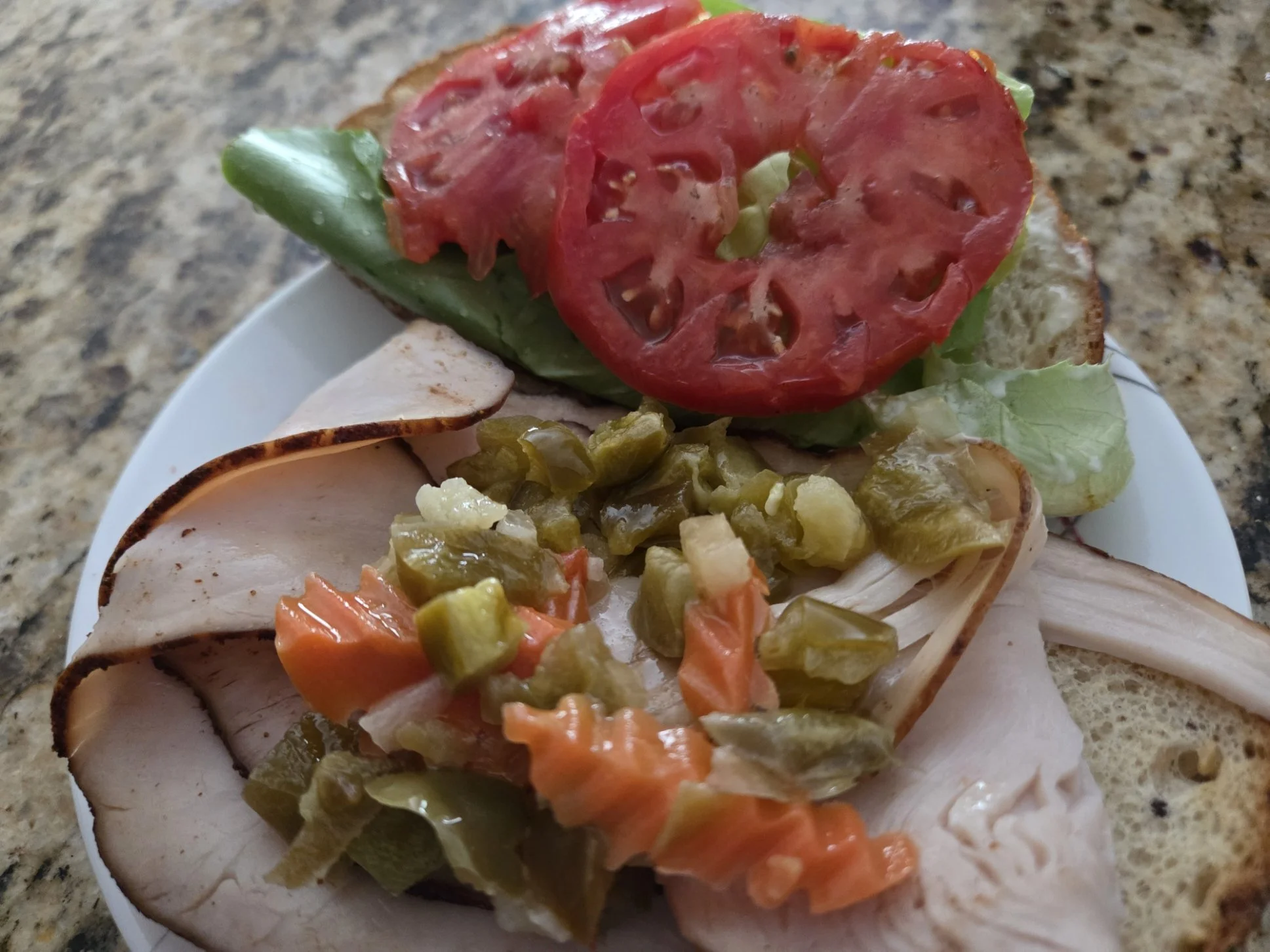 Above photo by COOL HAND FRANK. Beefsteak tomato slices homegrown.